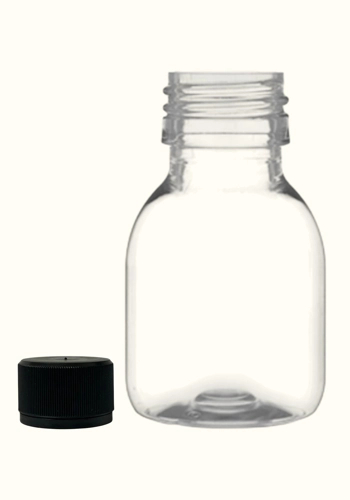 60ml Clear Pet Plastic Sirop Bottle & 28mm ROPP Caps